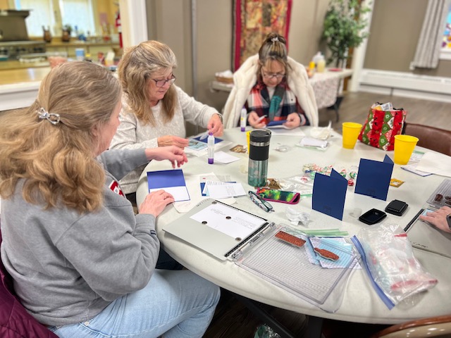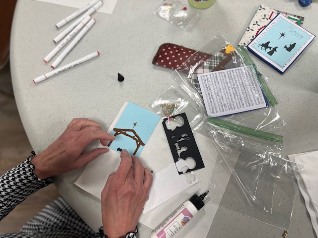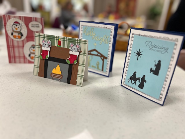 We had a wonderful time getting together to make some special Christmas cards! Thank you to Patsy Shaw and Amy Boya for leading this class, and to everyone who participated. Everyone had a great time and left with some memorable Christmas cards to share with friends and loved ones. This may become an annual tradition!