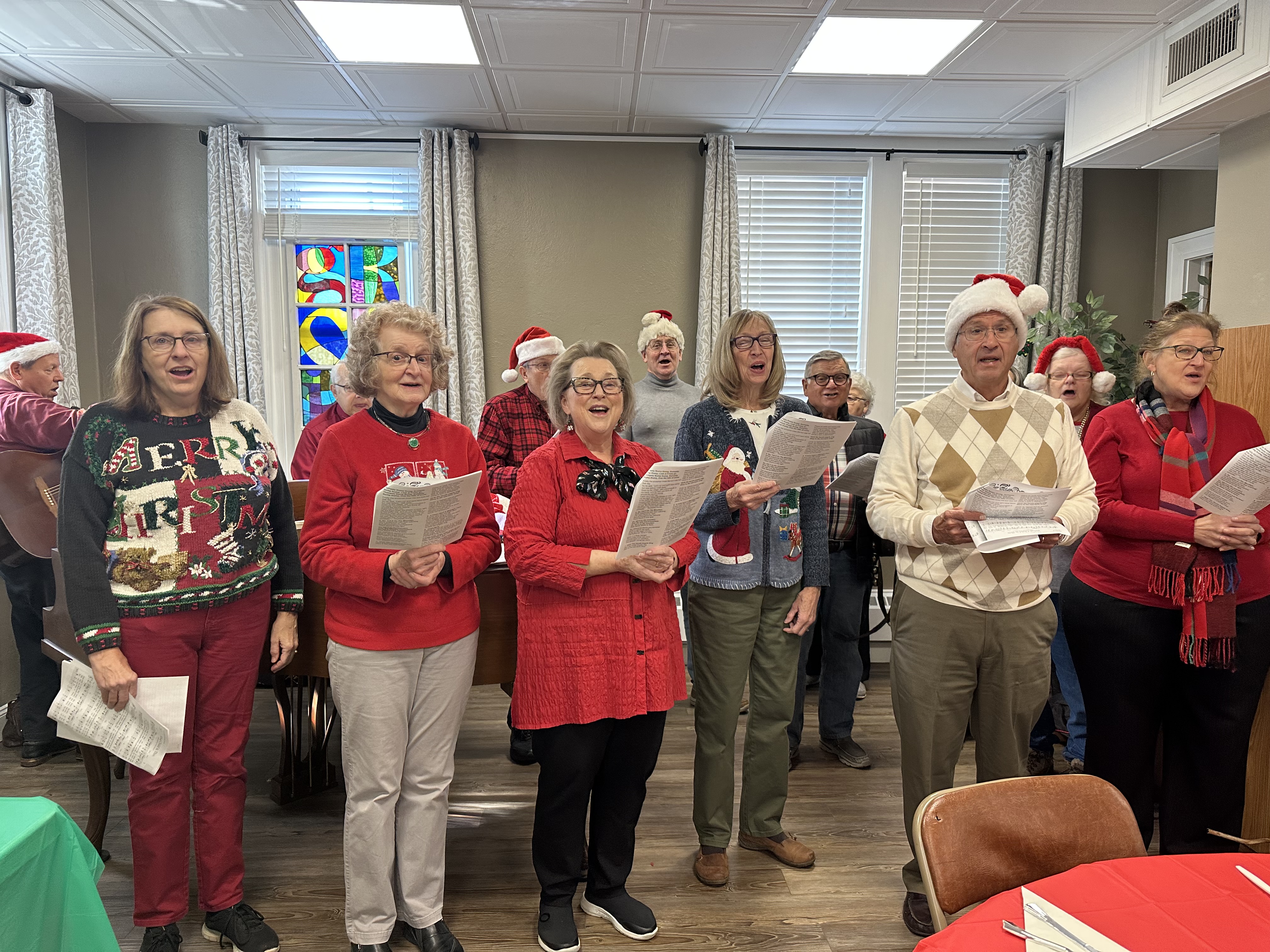 We are always delighted to host the New Hope Ministries Christmas party. This year’s was particularly festive, with the addition of the piano in our fellowship hall. Our Minister of Music, Melissa Jacoby, lent her special talents to the party by playing joyful holiday tunes throughout the event and accompanying the attendees as they sang Christmas carols.